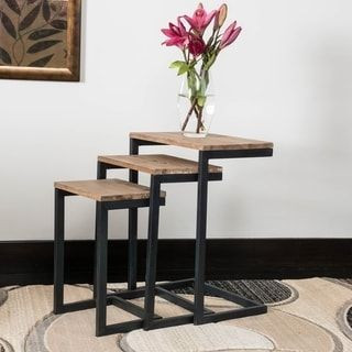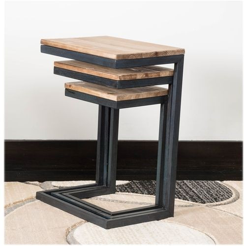 میز عسلی سه تایی چوب و فلز آدرین 0902